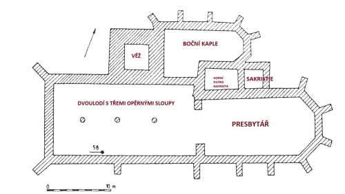 Krypta s kněžištěm jsou tedy nejstaršími částmi, které vznikly již kolem poloviny 13. století. Brzy poté byla ke kněžišti přistavěna raně gotická patrová sakristie.