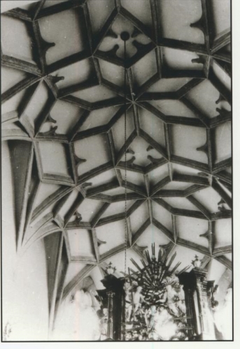 Velká přestavba, k níž došlo na přelomu 15. a 16. století, se netýkala jen kaple. V letech 1512–1517 byl postaven nový presbytář s obdélným půdorysem, který svou neúměrnou rozlehlostí (délkou 17 metrů byl jen o málo menší než samotná loď-dvoulodí, kterou i převyšoval) působil dojmem vlastní samostatné svatyně. Presbytář byl zaklenut nádhernou síťovou klenbou, která byla nejcennějším stavebním prvkem kostela. Klenební žebra byla nepravidelná a vytvářela vzorec osmicípých hvězd. Ze žeber vystupovaly výčnělky představující holubice. Po pádu kostela byla tato klenba označována za unikát jagellonské gotiky řadící se svým významem hned za skvosty jako Vladislavský sál Pražského hradu a chrám svaté Barbory v Kutné Hoře.