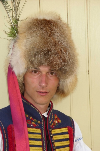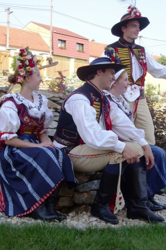 Klobouk byl velmi široký, vepředu mírně prohnutý – „na skyvku“. Zdobily jej bohaté aplikace korálků, žinylek, stuh apod. – u svobodných mužů i vonice tvořená třemi cípy. Také vesta se opatřovala vonicí (jednocípou) s červenou stuhou.